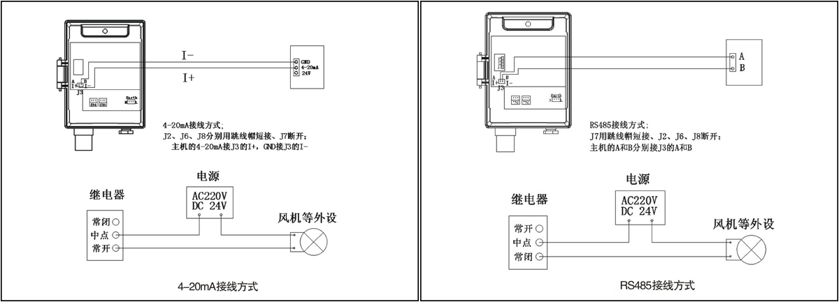 探测器根据应用场合可分为防爆型和非防爆型两种。防爆型:整机做了防爆处理,已达到ExdⅡCT6 Gb等级,可以直接连接防爆绕线管,安装在存在有爆炸危险性气体和蒸汽的场所。非防爆型:禁止安装在存在有爆炸危险性场所,采用堵头+垫片+橡胶套方式引线。